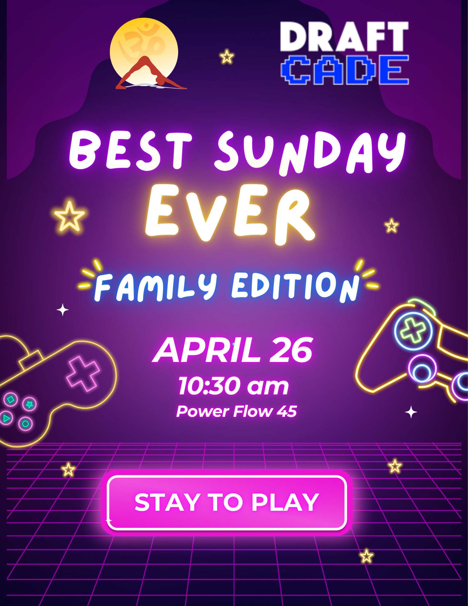 We’re teaming up with Draftcade for a Best Sunday Ever: Family Edition — a playful, community-filled morning designed for families to move, laugh, and hang together.